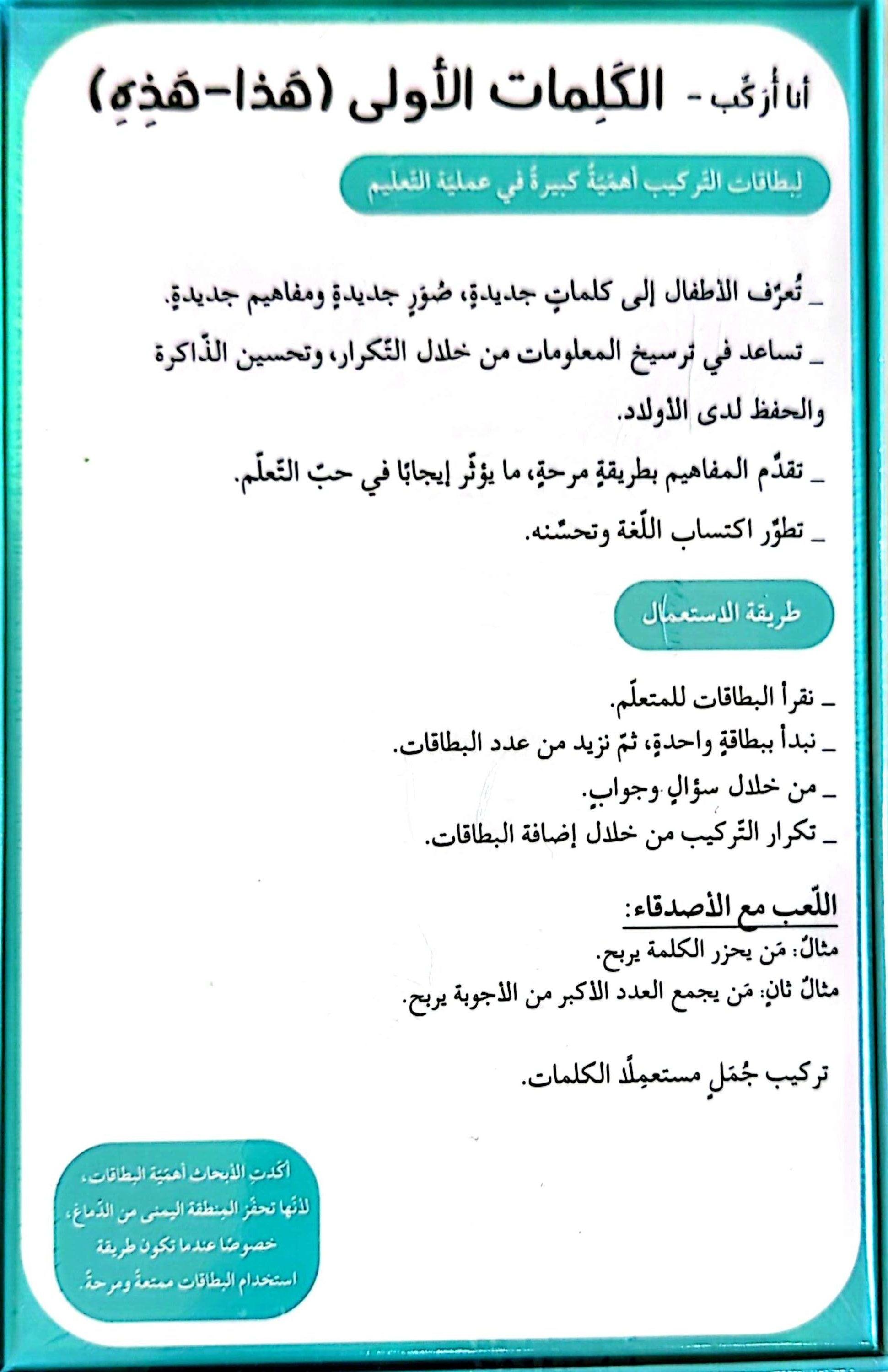 مجموعة مكونة من 14 بطاقة وهي وسيلة رائعة لتعلم وممارسة الكلمات الأولى في اللغة العربية مثل "هذا" و"هذه