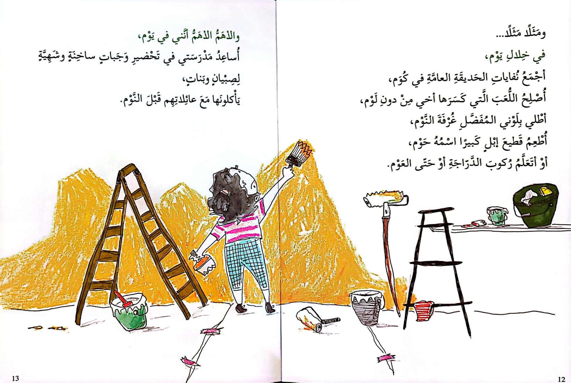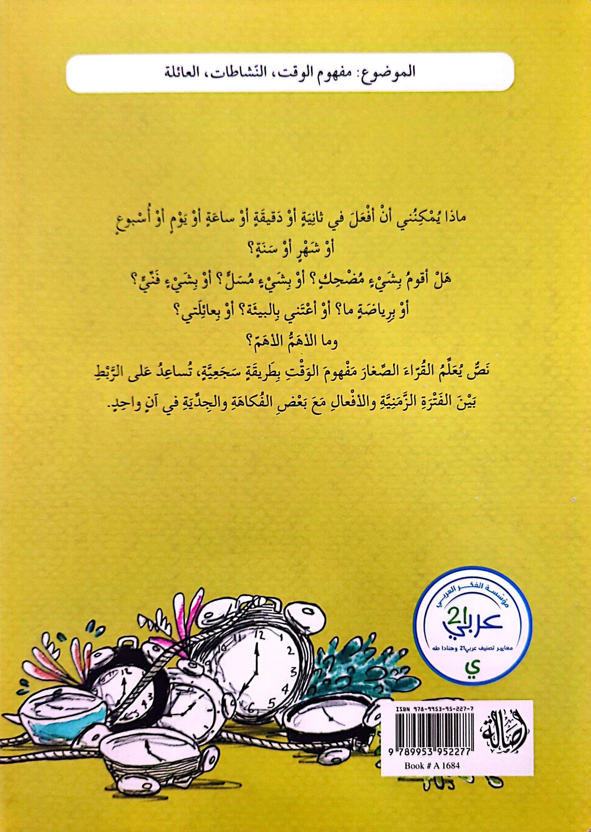 نص يعلم القراء الصغار مفهوم الوقت بطريقة سجعية، تساعد على الربط بين الفترة الزمنية والأفعال مع بعض الفكاهة والجدية في آنٍ واحد.