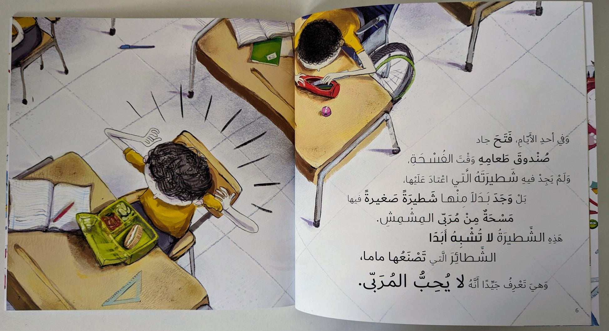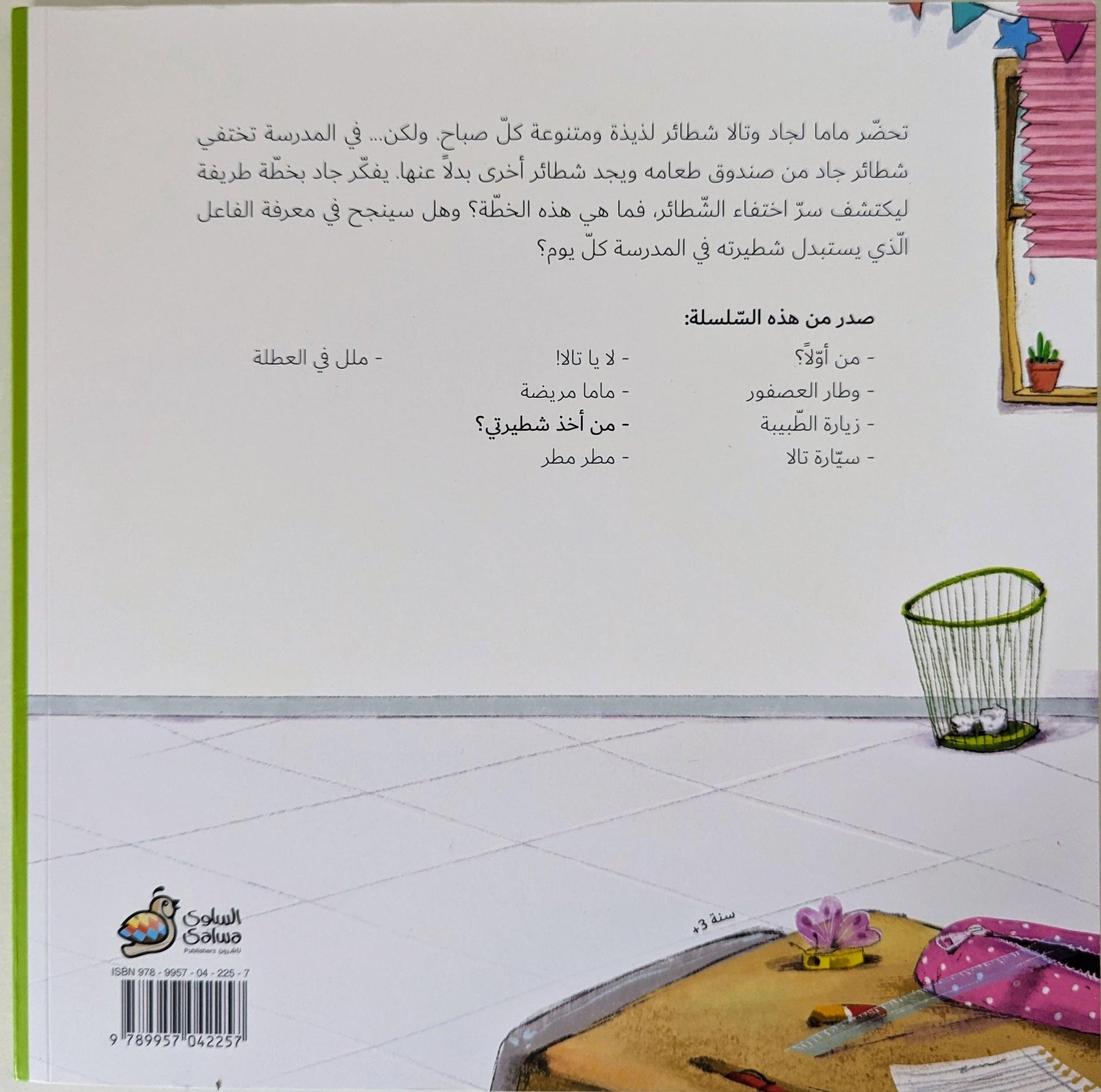 Every morning Mama prepares tasty fun looking sandwiches for Jad and Tala’s lunchboxes. One day the sandwiches start to mysteriously disappear from Jad’s lunchbox and are replaced by other sandwiches. Jad thinks of a plan to uncover the mystery of the missing sandwiches. What is his plan, and will it succeed?